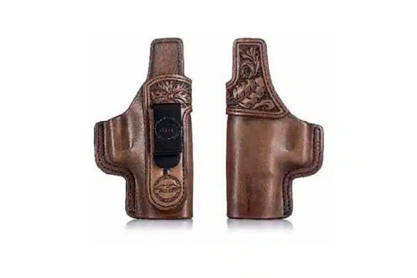 - Open-top reinforced by a second layer of leather ensures easy reholstering