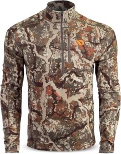 The First Lite Furnace Quarter Zip is a heavyweight merino wool base layer built for late-season hunts in frigid conditions. Its merino-nylon blend provides exceptional warmth, breathability, and durability while resisting odor during multi-day use. With a quarter-zip design for ventilation and easy layering, it’s a go-to piece for hunters who demand comfort and performance in the coldest environments.