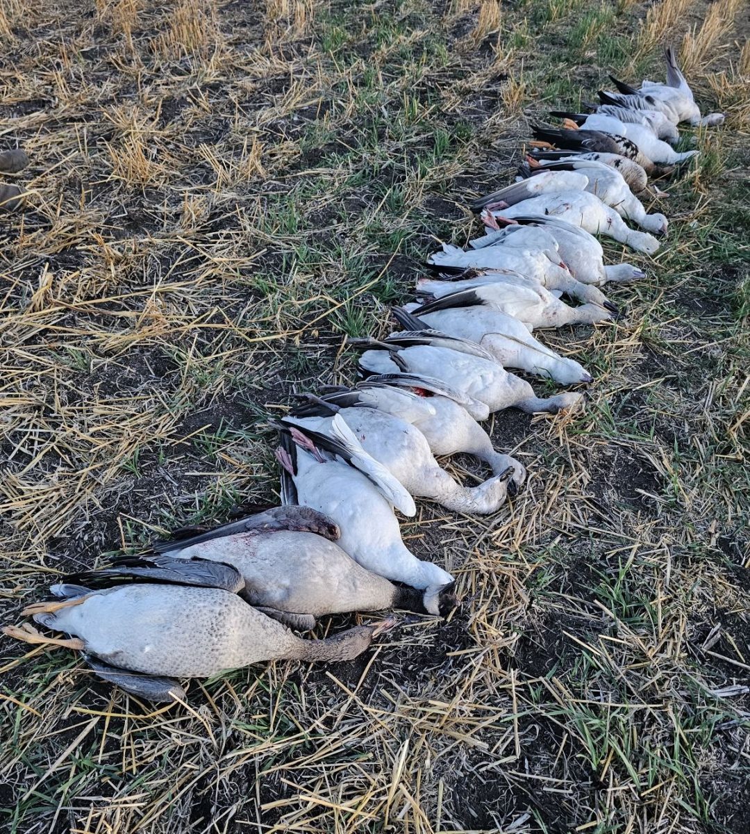 That afternoon, we set up for snows once more. Under bluebird skies and with no wind, the birds proved cautious, but watching thousands of geese swirl across the horizon was an experience all its own. We shot some snows, Ross’, and a couple of beautiful specks to finish the day. Layout blinds were used in the large field, and we blended in well, enjoying the downtime during which some snoring could be heard from parts of the lineup.